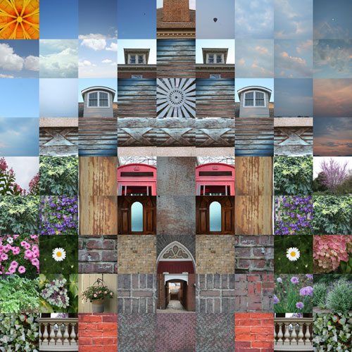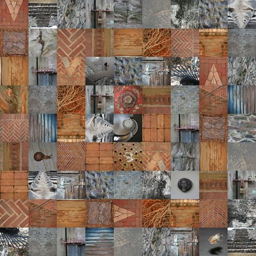 To prevent my collages from becoming too visually static, I prefer to use many different photographs – which might vary ever so slightly – of the same detail. Minute variations engage the eye more than rote repetition. In other words, an eighty-one square collage is made from eighty-one different photographs.