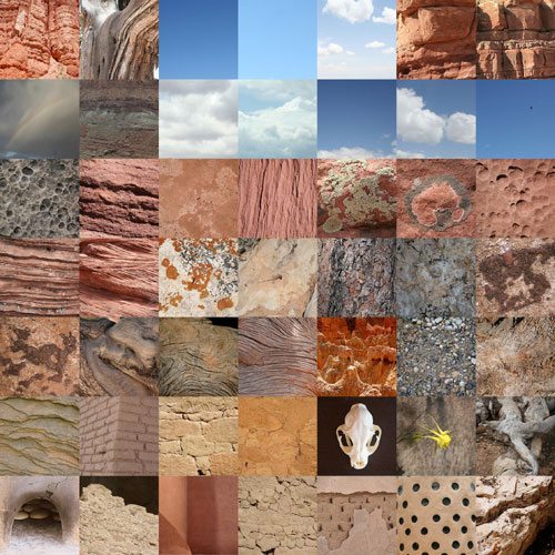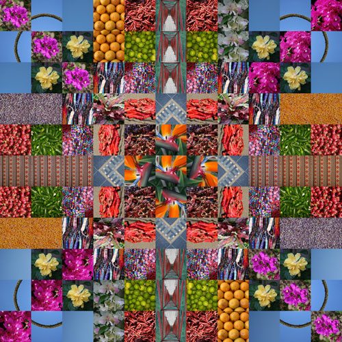 As a painter who makes photographs, I’m also collecting with my camera interesting textures, patterns and colors to arrange. After one’s eye takes in the overall abstract pattern of the collage, made from dozens of photographs, the individual pieces of the kaleidoscopic puzzle invite closer scrutiny.